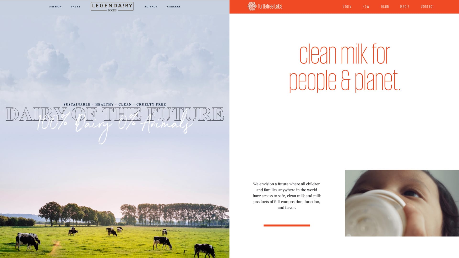 Both focused on the dairy category, with similar lofty messaging around reinventing dairy that “realigns your morals and your consumption” in the case of Legendairy Foods and “bypassing the environmental degradation and animal welfare issues of industrial dairy” in the case of TurtleTree Labs.