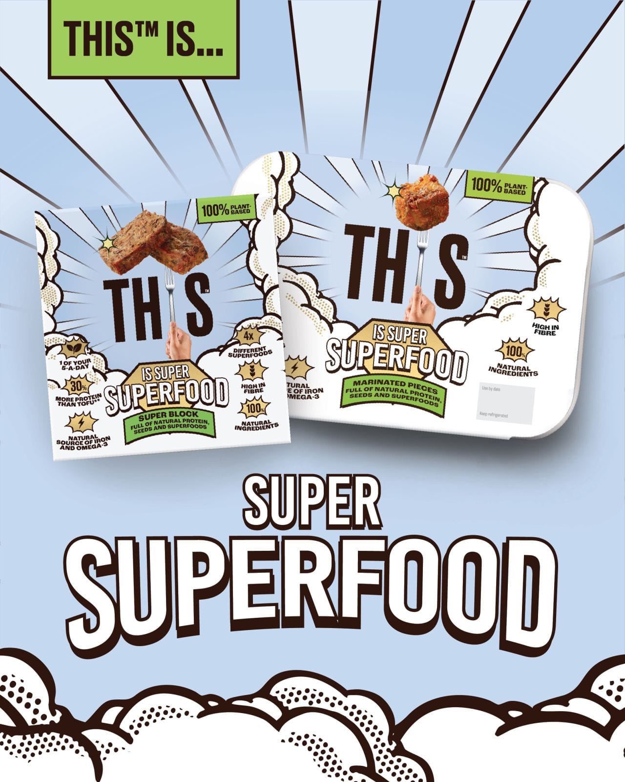 The target cares about what they’re eating, but the THIS Superfoods design buries compelling product transparency under layers of noise and decoration. Even if you enter into a lengthy staring contest with the pack the closest you’ll get is a Super Block or Marinated Piece, but of what?. Turn the pack over, however, and you discover its mushrooms, fava beans and seeds. Brilliant! Beans - certainly in the UK - are having a moment and all trends point to their continued success. Seeds equally - as consumers are continually hearing they need to eat 30 different plants (which includes seeds) a week. When one of the problems of meat mimics has been “if not meat, what is it?” THIS IS appears to have had the opportunity to overcome this, but hasn’t.